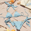 Be flirty and chic in our signature tie side bikini bottom. Can be worn as a high leg or on your waist. Designed with thick ties to sit comfortably on your body.